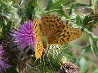 The silver-washed fritillary is one of our largest and most colourful butterflies and a strong flyer. My partner photographed this one on the edge of a woodland ride on a local common. We had stumbled on "butterfly corner": a crossroads in the woods with a small patch of grassy scrub at its centre, dancing with butterflies.